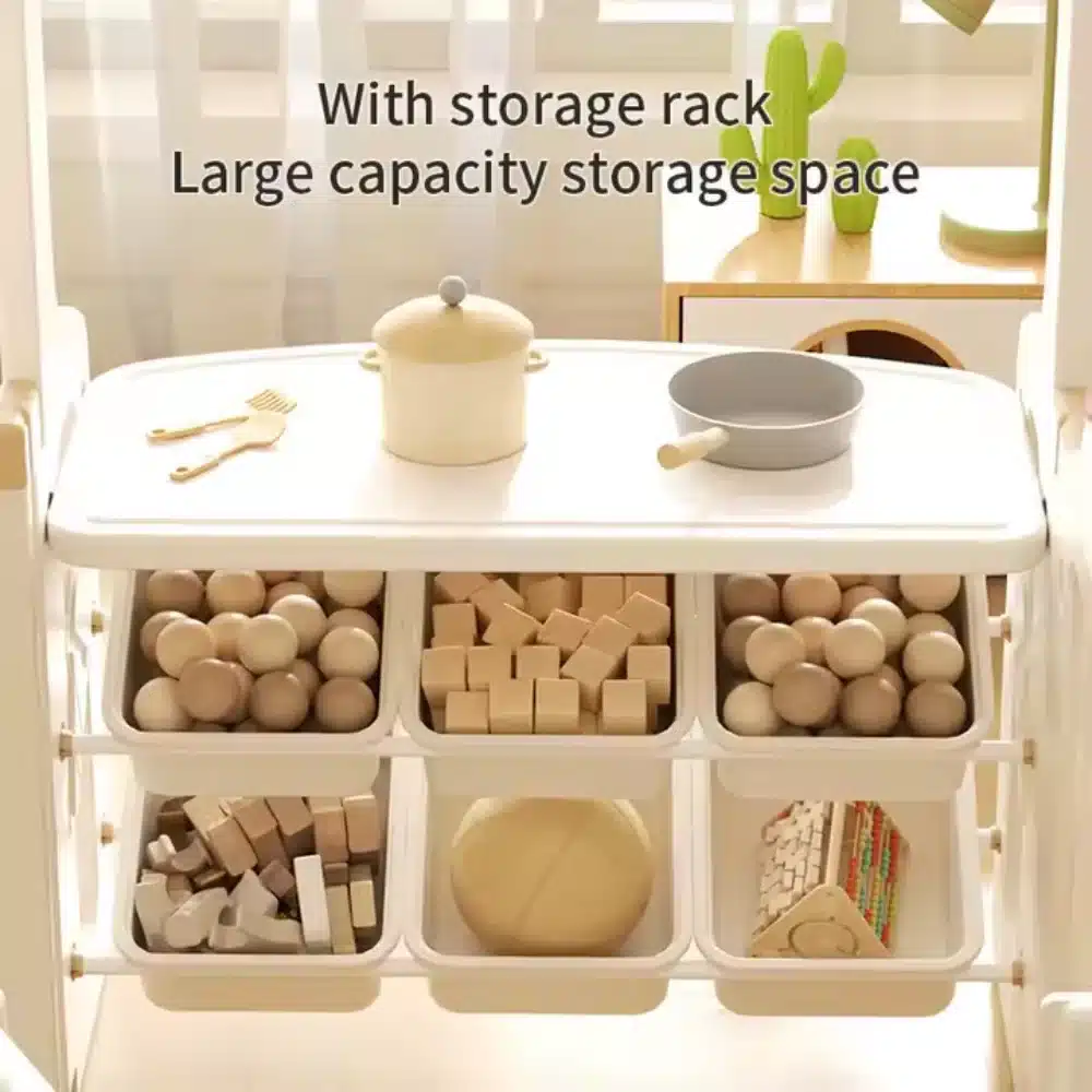 Includes storage for toys